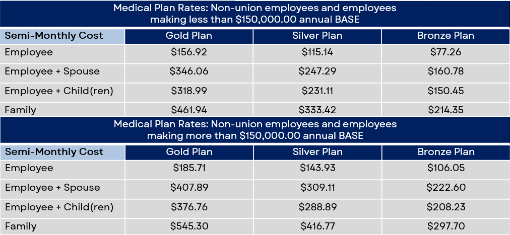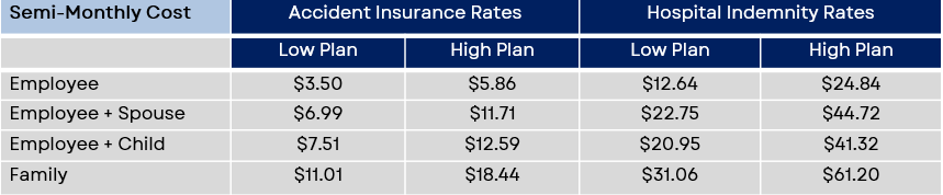 • 2 Person/Family – $20 per pay period/$480 annual maximum.